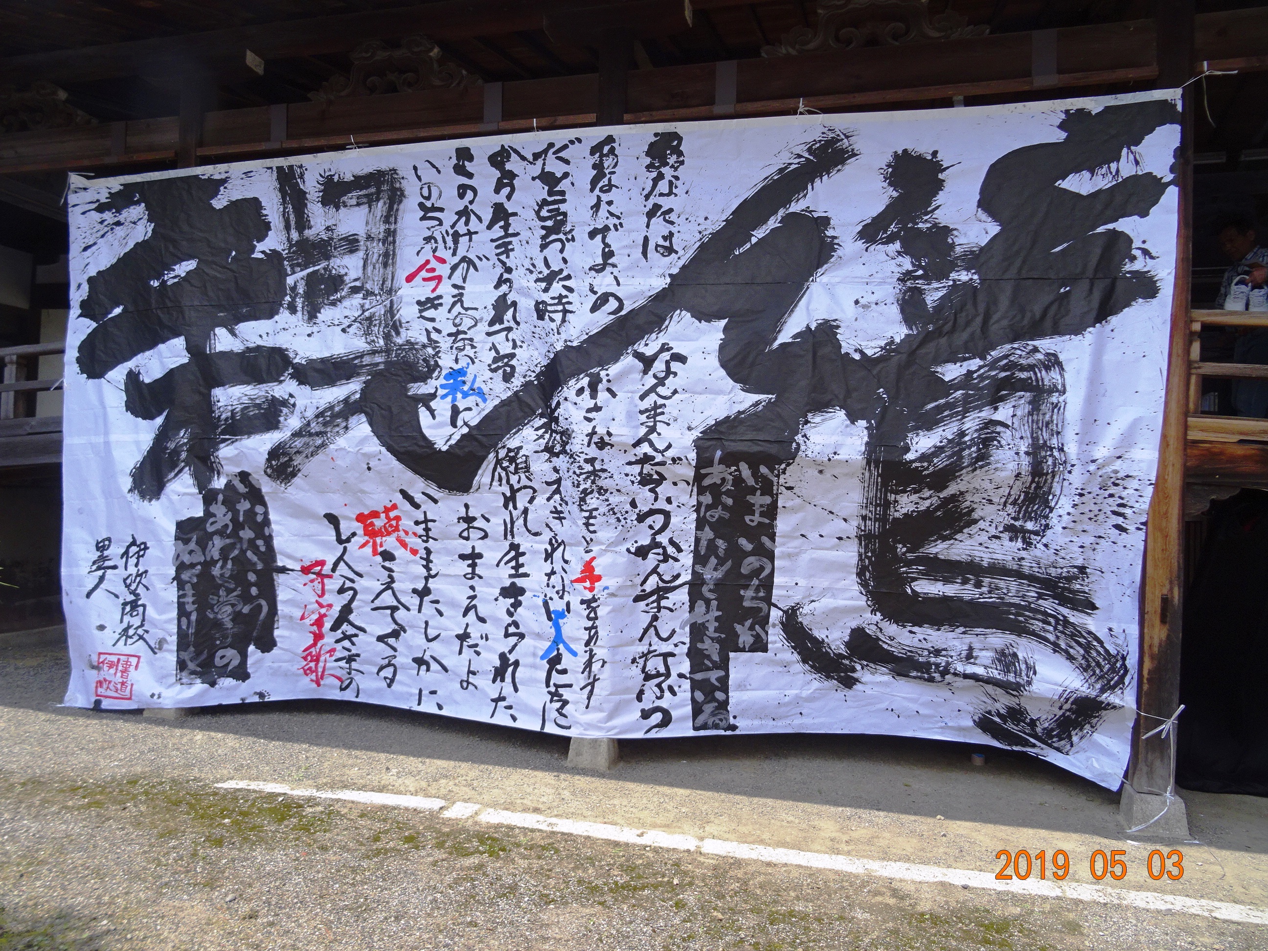↑書道パフォーマンス(伊吹高校書道部)