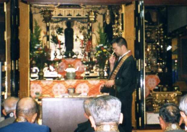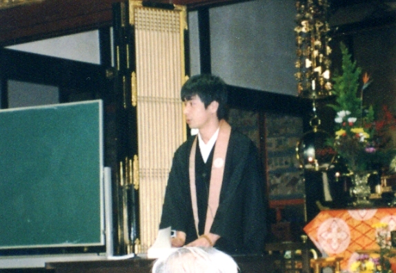 午前九時半からの満日中の後、島野政友さん(大阪 貞正寺住職)の御俗姓の拝読、高山崇さん(山階町 円乗寺住職)の前座法話、ユ ヨンジャさんの挨拶、黒田進先生の法話です。