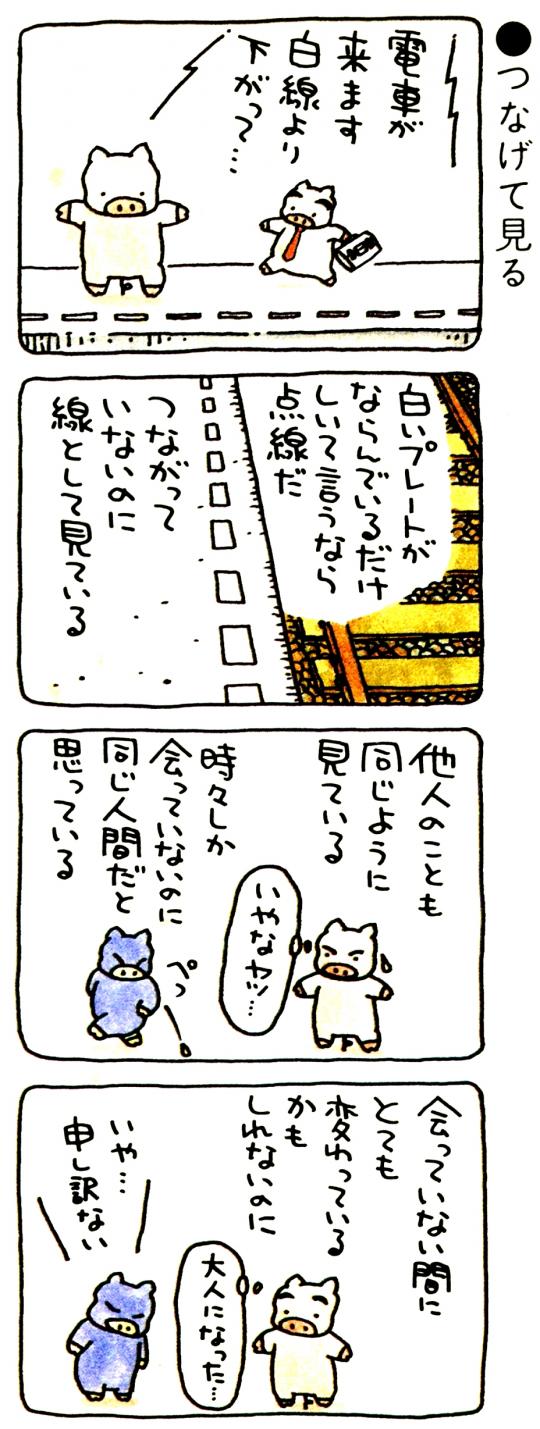 ◆「はま」で私たちが見落としている「海の中」では、何万のいわしのとむらいがあります。しかし、私たちが目を向けるのは、そんな「海の中」ではなく、言えば「どうかいわしが一匹でも多く捕れますように」ということではないでしょうか。どうでしょう、私たちの日常、意識にあるのは、日本という名の「はま」の景気のこと。私たちの地域社会という名の「はま」の発展のこと。私の家庭という名の「はま」の無事のこと。最後は私自身という名の「はま」さえよければいいということだと思います。