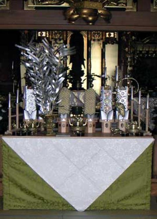 ■一面に花が敷き詰められた葬儀式をよく見かける昨今、真宗では、お寺、当家、ホールでも必ず紙花という花をお備えします。