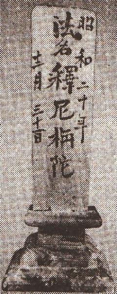 今一度、「法名、釋尼栴陀(しゃくにせんだ)」の差別法名(下写真参照)から考えたいと思います。昭和五十八年、鹿児島別院保管の過去帳から差別法名が発見されました。、昭和20年12月31日に亡くなった7才の女の児につけられたものです。また、位牌もご遺族のお仏壇に安置されてありました。