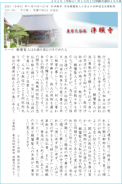 と仰り、生涯手本とされたのが教信沙弥という人です。若き日は奈良の興福寺の学僧でしたが、そこを出られ賀古の地で生きられました。そのことで是非ともご紹介したい文章があり、表紙に掲載させて頂きました。