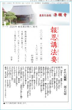 「部落差別問題等に関する協議会」(次頁参照)でオンラインですが、なつかしい方々にもお会い出来て本当に嬉しかったです。逆に言えばコロナによって私もこのところ寂しい思いで一杯でした。このような状況にありますが、浄願寺報恩講法要は通信のようにお勤めさせて頂きます。無二の法座に皆様と是非ともお会いさせて頂きたいと思います。どうぞよろしくお願い致します。