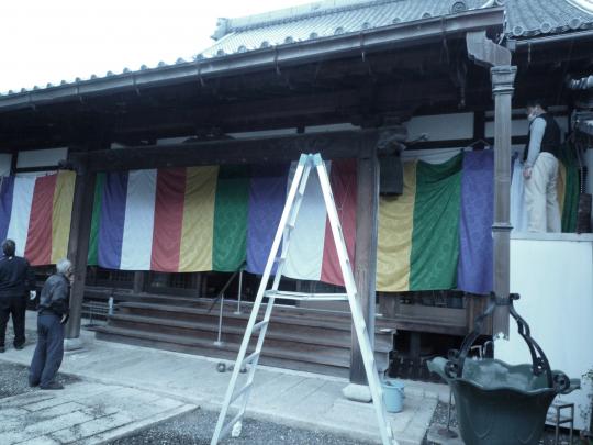 ↑11月20日(金)朝 本堂 向拝 幕張り