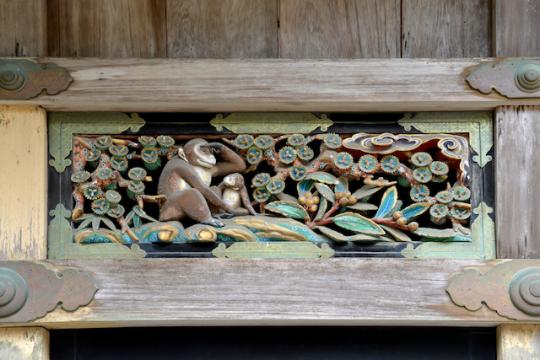 ■日光東照宮の神厩舎(しんきゅうしゃ)にある三猿。これは子ども猿がやがて母親猿になる過程が8面に渡って掘られています。