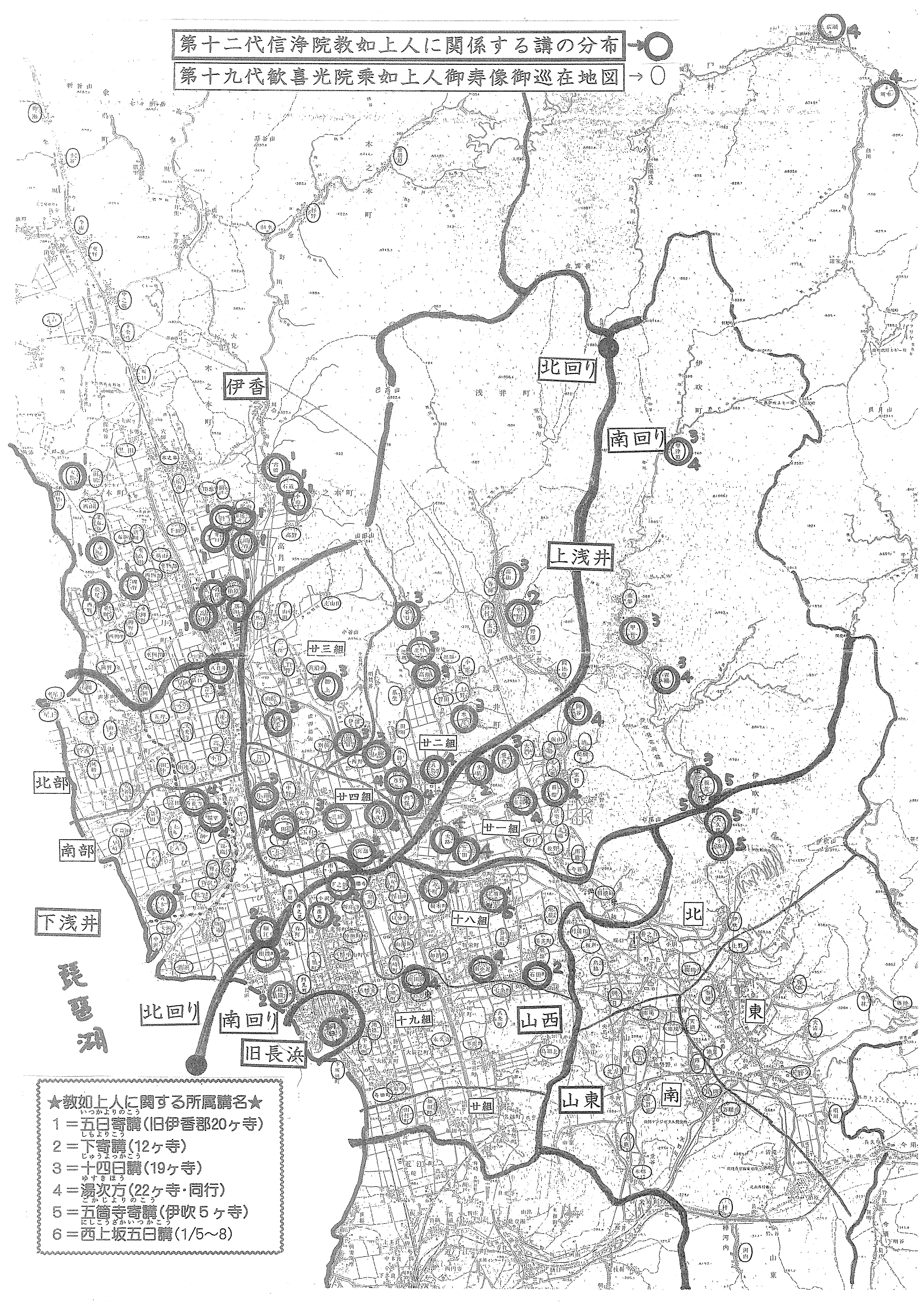 二十二日講の組織は湖北一市三郡を六つの地区に分けて構成されています。
