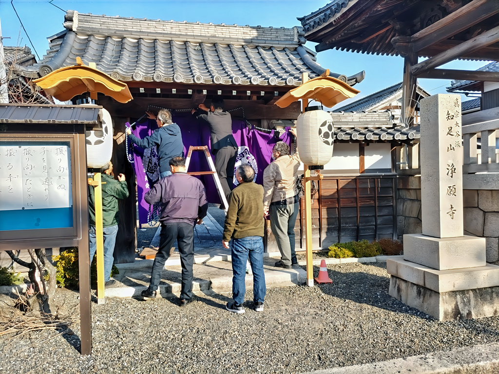 ↑11月14日(金)朝 山門 提灯設置 幕張り