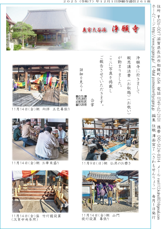 11月14日(金)から11月16日(日)、浄願寺に於きまして報恩講法要(お取越)(お敬い)が勤まりました。ここに写真を掲載しご報告させていただきます。