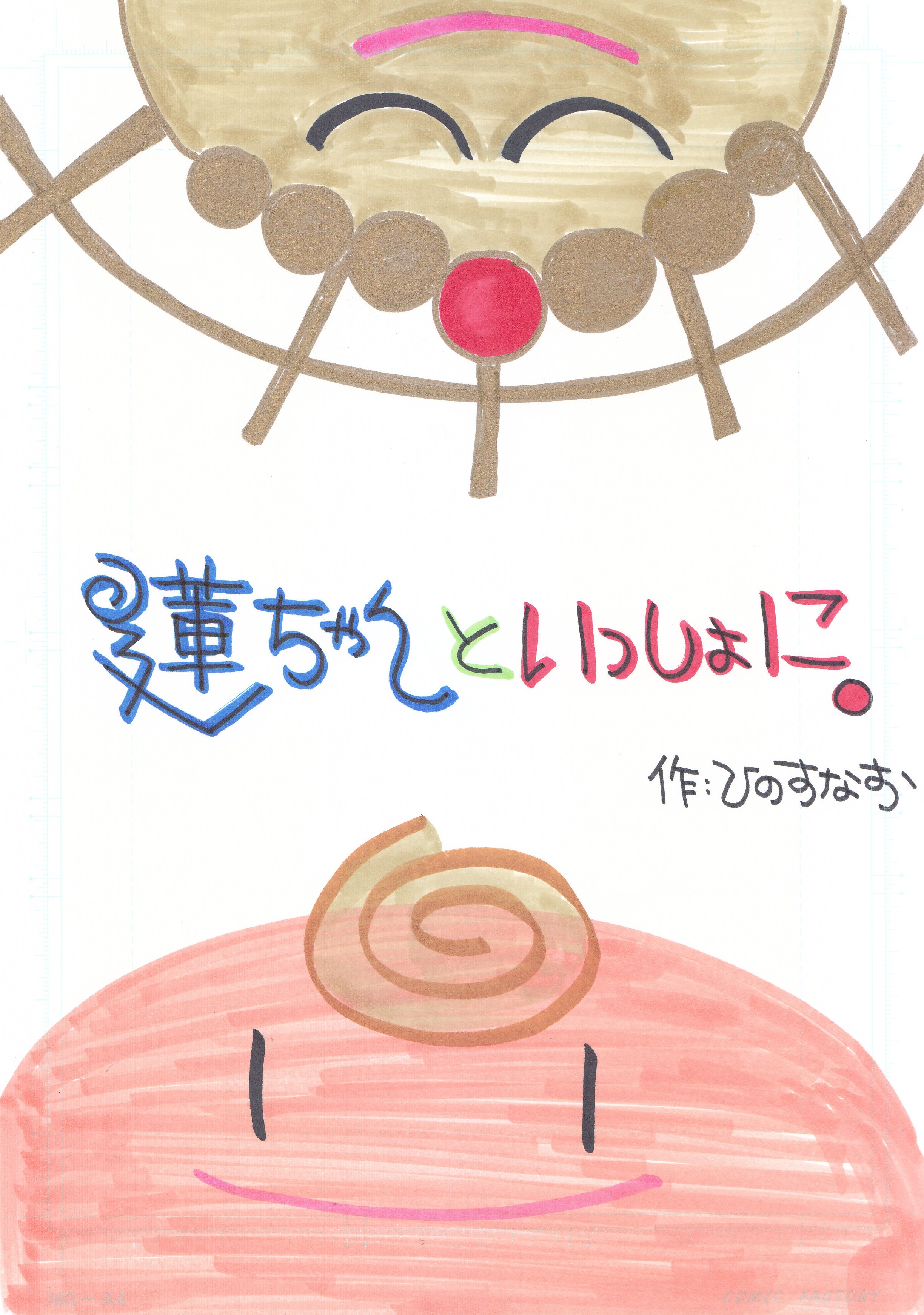 ▲現代という泥中の世にしなやかに光を照らすマンガ「蓮ちゃんといっしょに。」そこからいつも私たち一人ひとりに「卑湿の淤泥に、いまし蓮華を生ず。」の仏さまの願いを届けてくださいます。私にとってひのすなおさんは東本願寺の同朋会館補導、青少年部、さらに長浜教区御遠忌のおつとめ おけいこ会、浄願寺御遠忌のポスターデザイン等…古き善き法友であり、まさに「いっしょに。」をくださいました。今、心からお礼申し上げます。これからも末永くよろしくお願い致します。最後になりましたが、出版するに当たってご苦労いただきました宮尾卓さんには本当にありがとうございました。合掌