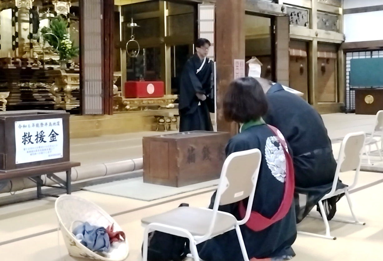 ↑お勤めの後、輪番挨拶(8:51撮影)