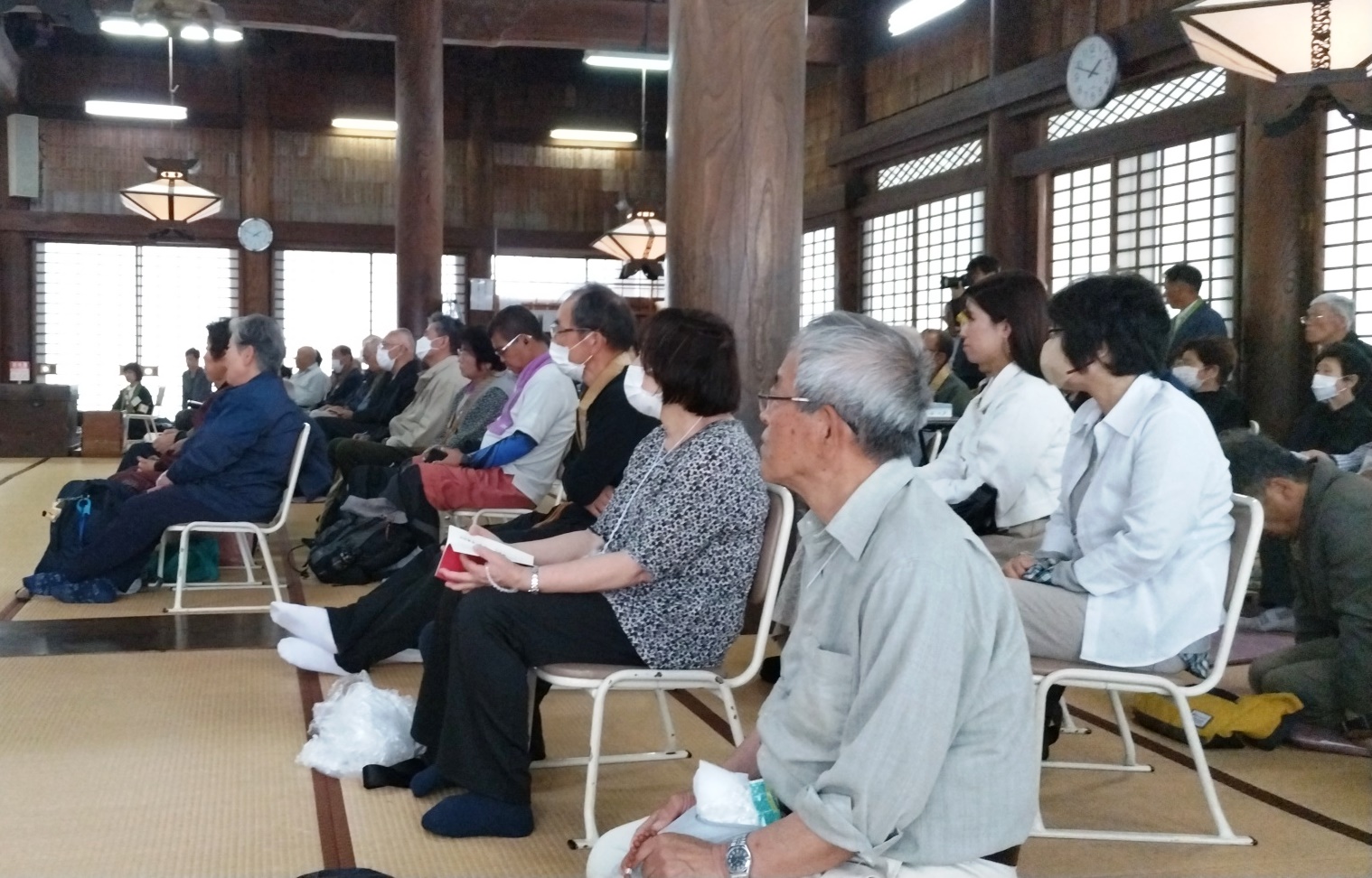 ↑お勤めの後、随行教導より法話 於五村別院本堂(13:49撮影)