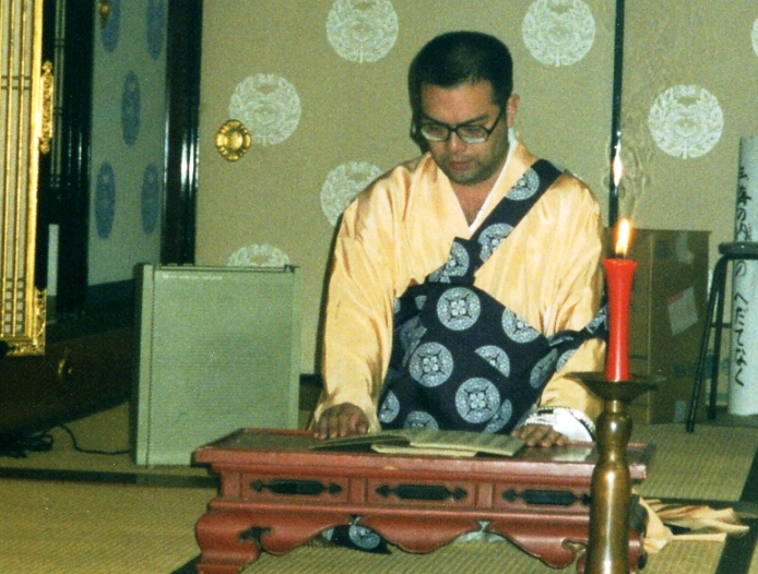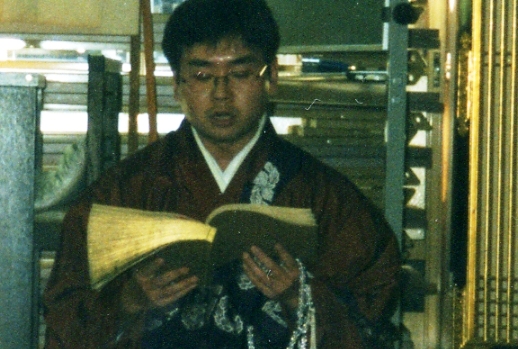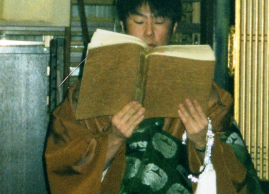 午前六時からの晨朝の後、藤並慈さん(大阪 仏乗寺副住職)の御文の拝読、越本達了さん(大阪 専光寺副住職)の法話です。