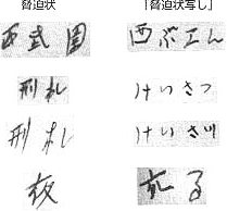 ↑石川さんが逮捕後、7月2日付で書かされた「脅迫状写し」と脅迫状には重大な差異があります。とくに重大なのは、脅迫状で正しく書かれている「刑」「武」「園」が「脅迫状写し」ではひらがなで書かれているという点です。「刑」「武」は手本にしたという「りぼん」にも出ていない漢字です。寺尾判決は「「刑」の字はテレビでおぼえていた」「「武」の字は西武園へよく行っていたのでおぼえていた(可能性もある)」と勝手な推測をしていますが、それならば7月2日付の「脅迫状写し」で書けていなくてはならないはずです。寺尾判決の誤りはあきらかです。脅迫状と「脅迫状写し」の差異こそ石川さんの無実をあらわしています。