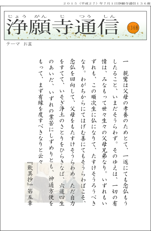 住職記の文章は東本願寺発行の小冊子『お盆』(2015年版)に掲載されたものです。また最後の頁もその中から転載したものです。