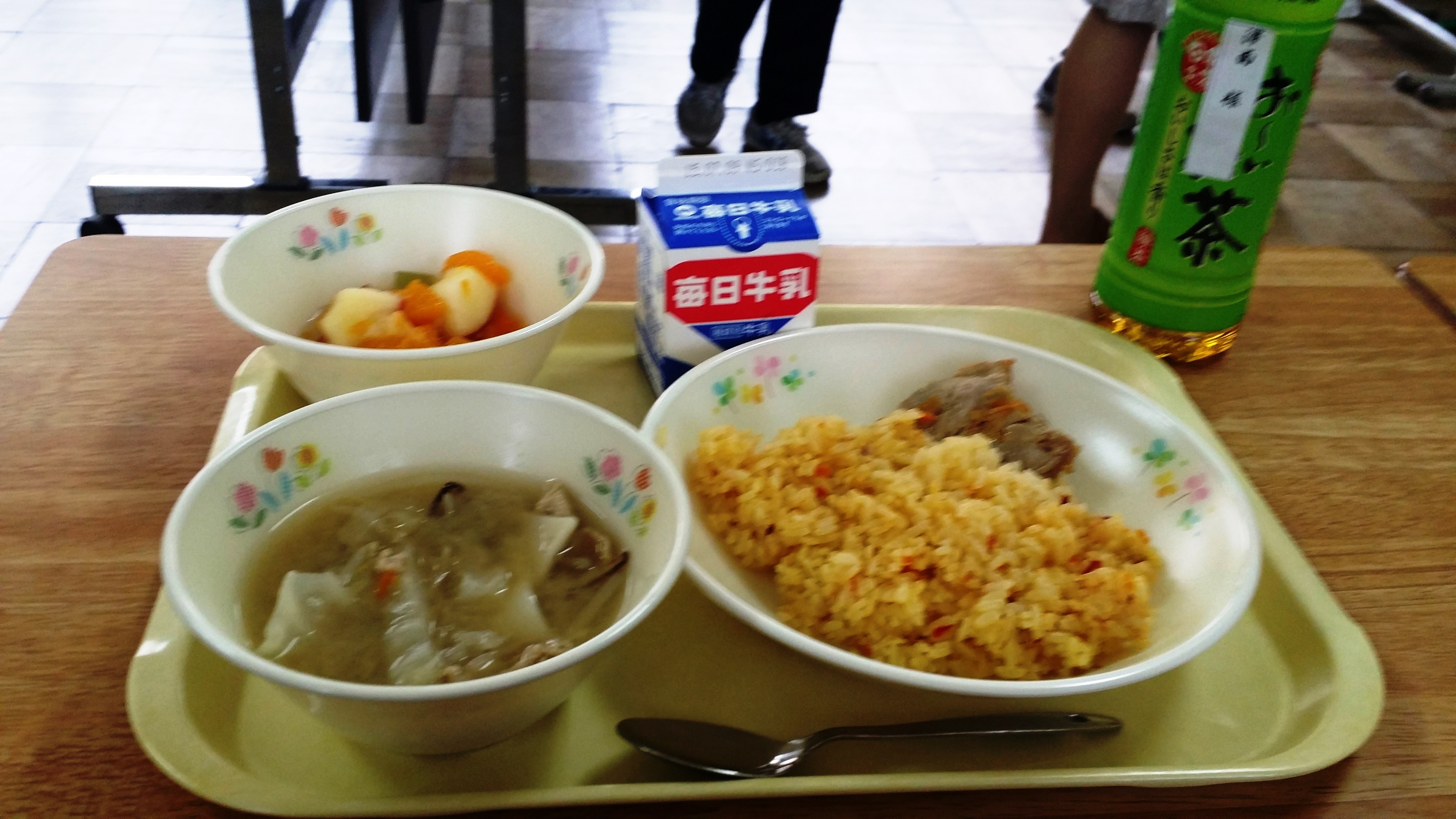 ■お昼は、交流会場で「学校給食」をいただきました。ある参加者の方が「私たちの子どもの頃は本当にひもじい思いをした。今の子どもたちにはそんな思いはさせたくない。こんなおいしい給食を食べていることがうれしい」と語っておられました。