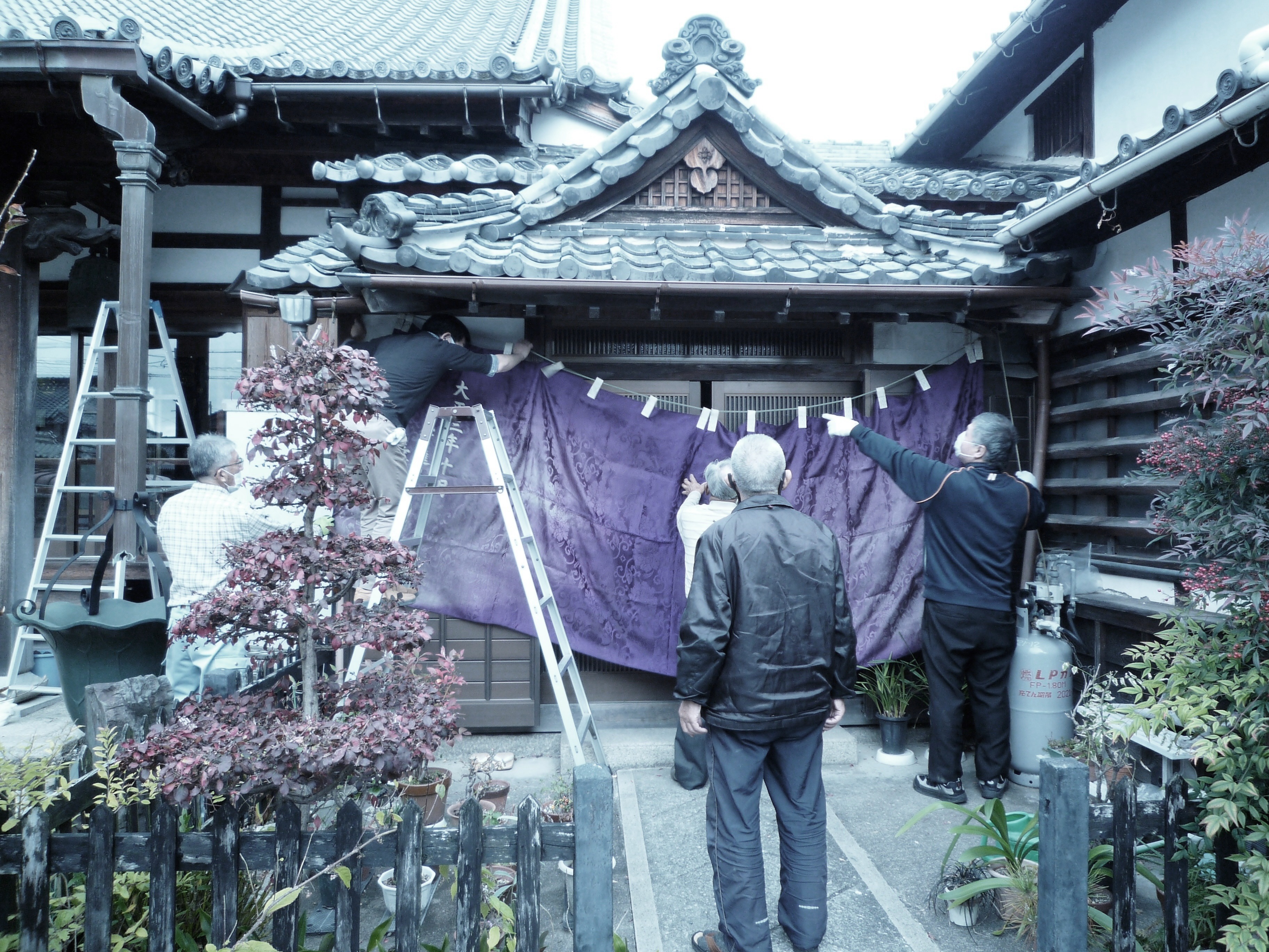 ↑11月20日(金)朝 本堂 向拝 幕張り