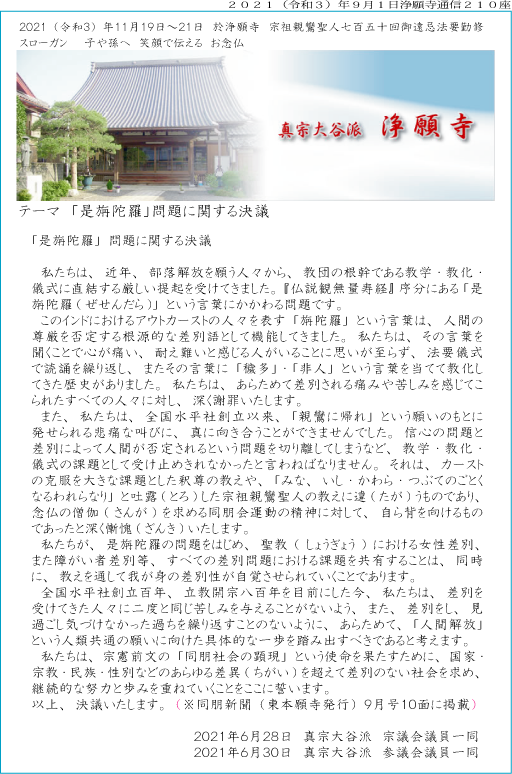 2021年6月28日 真宗大谷派 宗議会議員一同