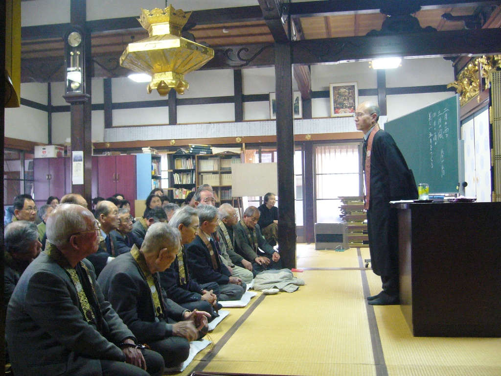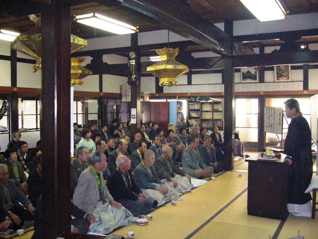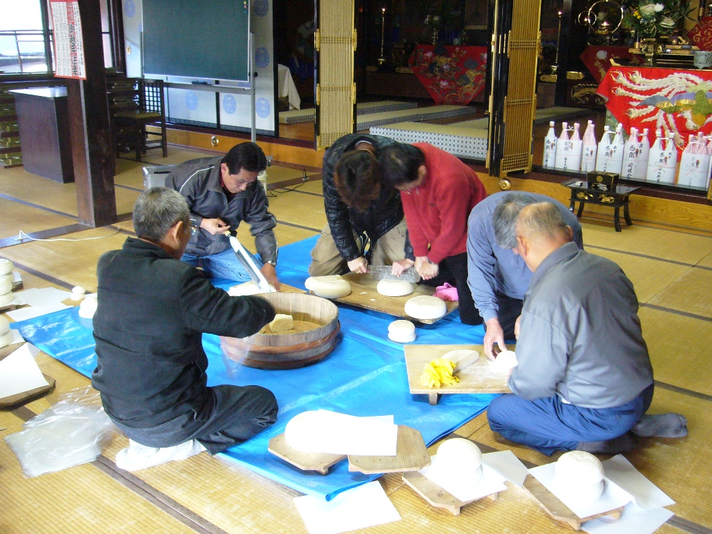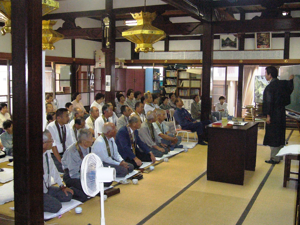 (写真は盆会法要前の仏花、打敷等の荘厳準備)